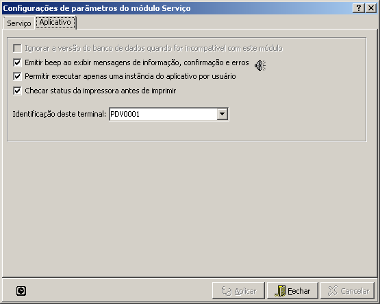 Emitir beep ao exibir mensagens de informação, confirmação e erros: Marcado, o sistema emitirá beeps quando for exibido qualquer mensagem. Desmarcado, o sistema não emitirá nenhum beep. Para ativar ou desativar este parâmetro será necessário reiniciar o módulo para que a configuração passe a funcionar. O beep tem a função de alertar o usuário para qualquer evento que aconteça durante a execução do módulo.