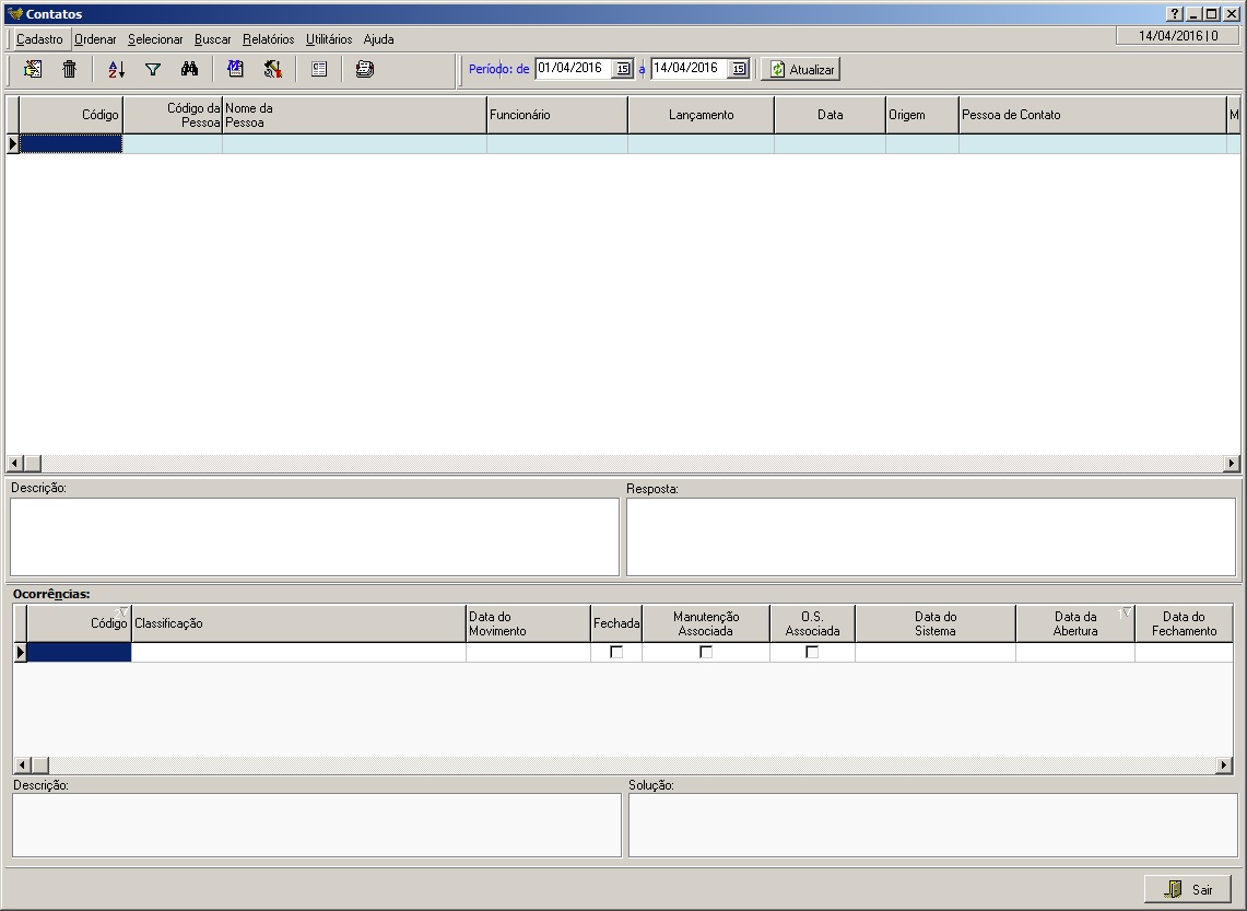Exibe os Contatos e as ocorrências deste contato selecionado